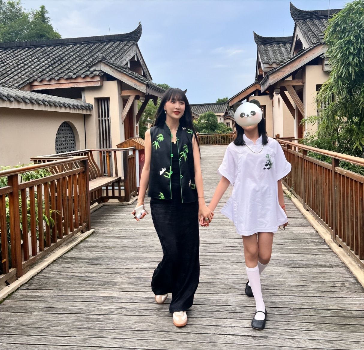 13岁的小北北很有巨星范儿,小小年纪就能看出是个高挑的大长腿美女。小北北的眼睛和发型都和妈妈很像,母女俩站一起不像两辈人,反而更像姐妹。