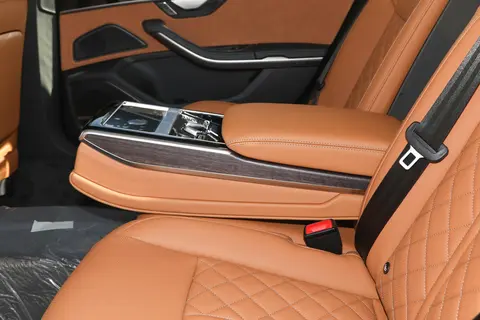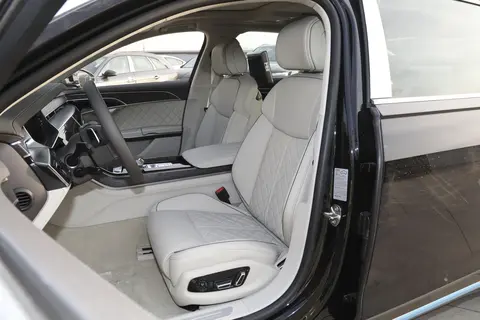 接着加20.82万来到55TFSI quattro旗舰型,指导价109.8万,相比上个版本,发动机最大功率提升至250千瓦,最大扭矩来到500牛米,最大马力340匹,零百加速时间5.7秒,WLTC综合油耗提升至9.28升,然后多了前排中间气囊,DOW开门预警,后方碰撞预警,新增1颗激光雷达,L2级别的辅助驾驶,全速自适应巡航,倒车车侧预警,并线辅助,车道保持辅助,车道居中保持,道路交通标识识别,前后多层隔音玻璃,后排液晶屏幕,方向盘增加了加热功能,还有HUD抬头显示,副驾座椅减少了4向调节,副驾驶位后排增加颗调节按键,前排座椅新增了按摩,二排座椅新增通风按摩,17个扬声器的3D高保真音响。