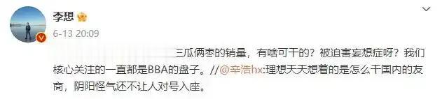 以至于有网友调侃说:李想个人素质的表现和理想汽车的销量成反比。
