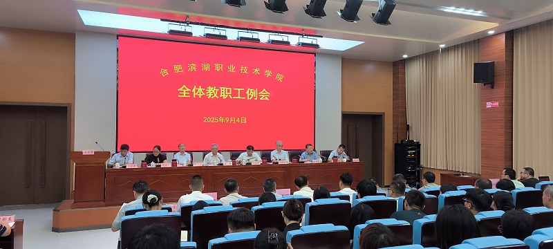 暑气未消秋已至,风劲帆满启新程。为全面部署新学期各项重点工作,凝聚共识、提振精神,合肥滨湖职业技术学院于2025年9月4日在行知楼学术报告厅隆重召开新学期开学工作会议。学校领导班子全体成员、全体教职员工、新聘和新进的教职工参加了大会。会议由校常务副校长周本顺主持。