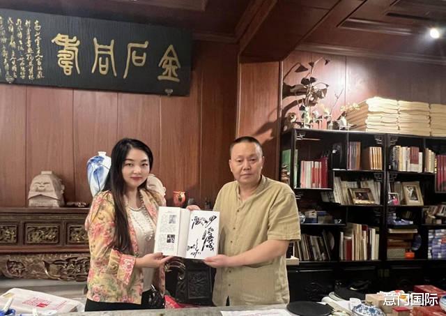 (笔者和彩砂画青年艺术家陈弢合影)