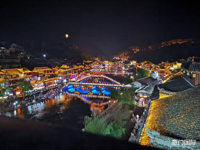(图为凤凰古城璀璨夜景)