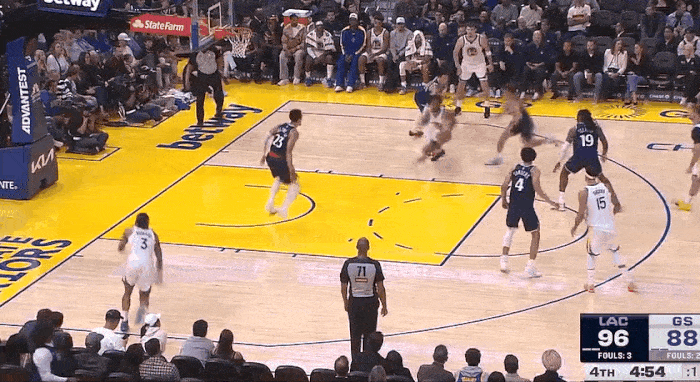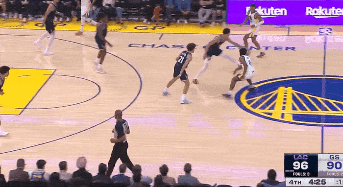 NBA季前赛,勇士对阵快船的比赛正在进行中。第四节比赛,理查德空切接球上反篮打进,随后超远追身三分连得5分。