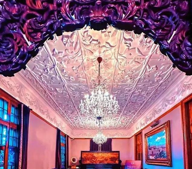 庆王府里的装饰很讲究,有精致的掐丝玻璃屏风、多彩的琉璃柱、阴沉木雕刻和金光闪闪的黄金树。