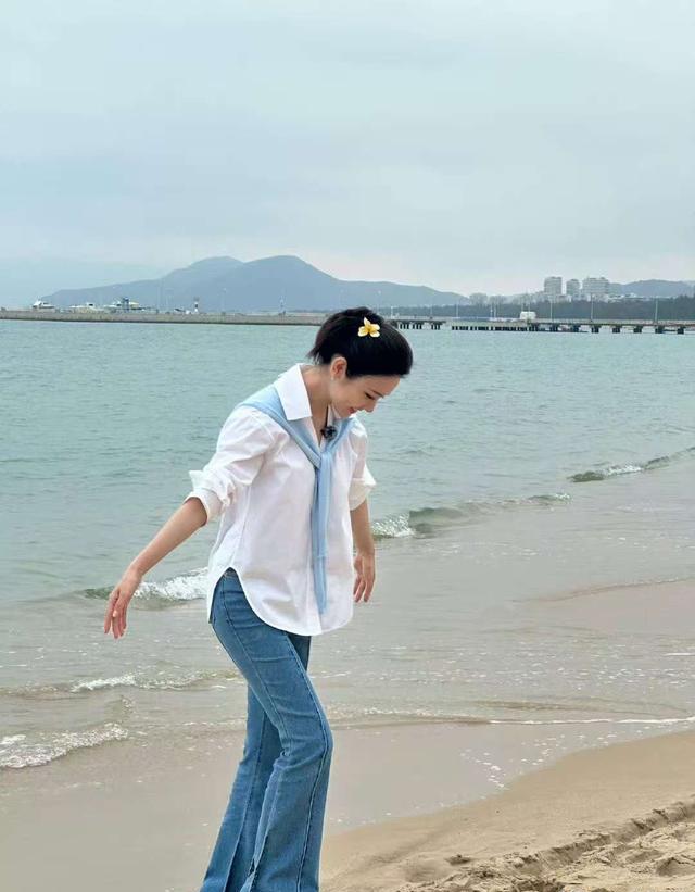 她身穿白色衬衣,发型朴素,有着独属于中国人的淡雅美。