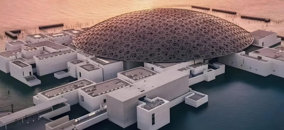 在波斯湾的碧蓝海水与金色沙漠交界处,一座银白色穹顶建筑静静漂浮——这便是阿布扎比卢浮宫。当罕见的沙漠暴雨降临,直径180米的穹顶化作天然乐器,雨滴敲击出万种音符,而穹顶下陈列的千年文物,则开启了一场穿越时空的光影对话。