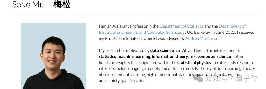 梅松:北大数院校友、斯坦福计算与数学工程博士、UC伯克利助理教授,2025年5月暂离学校加入OpenAI。