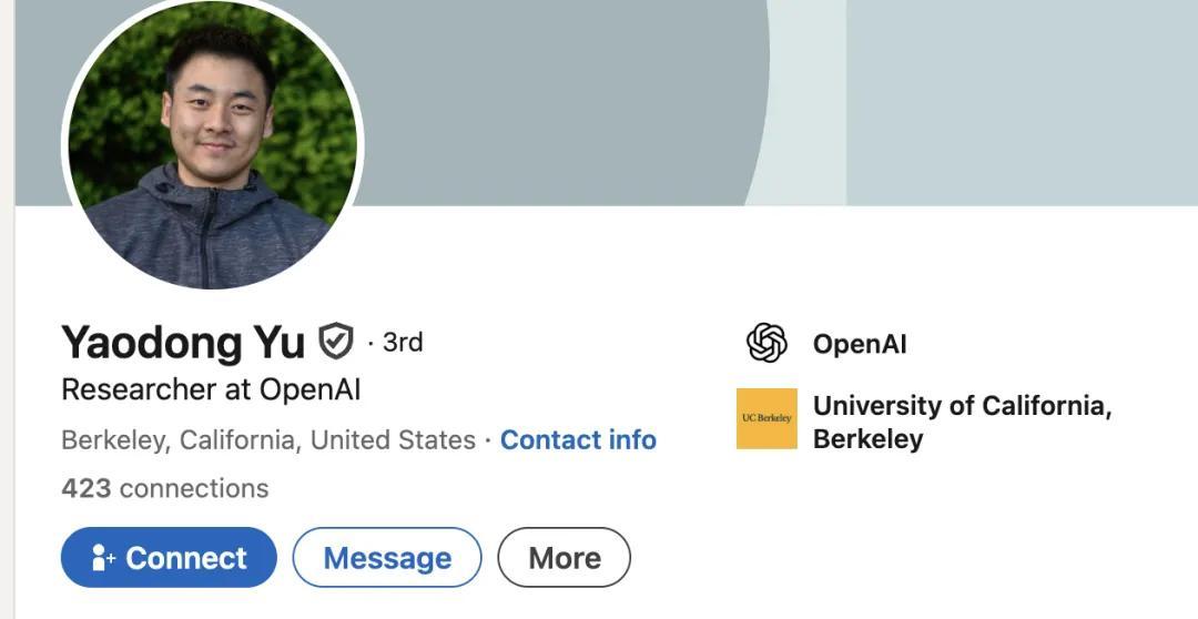 Yaodong Yu:UC伯克利博士毕业,2024年9月加入OpenAI。