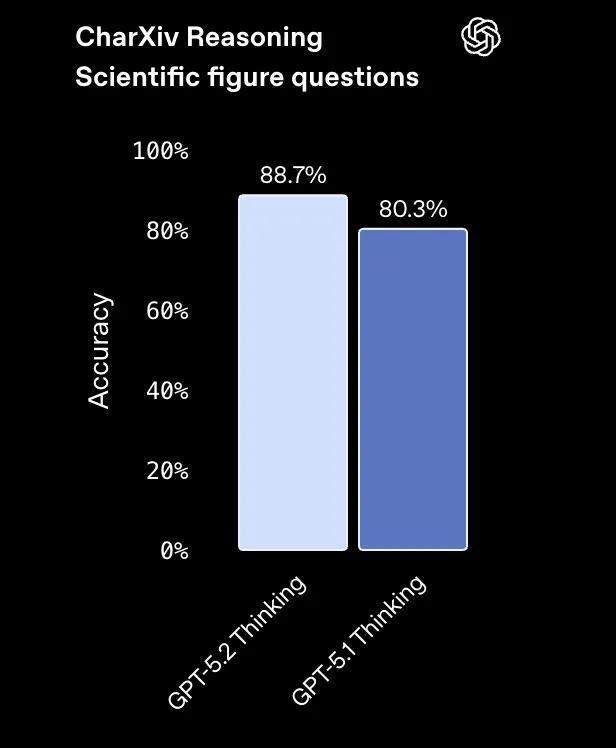 在科学论文图表理解上,GPT-5.2 Thinking的错误率大约降低了一半。