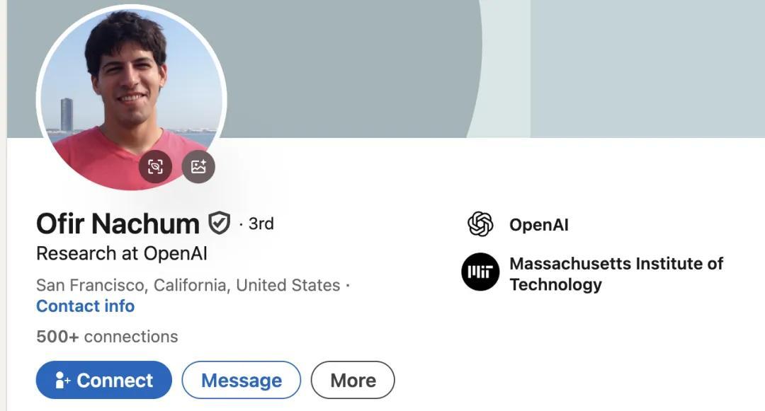 Ofir Nachum:MIT CS硕士毕业,前谷歌大脑研究员,2023年加入OpenAI。
