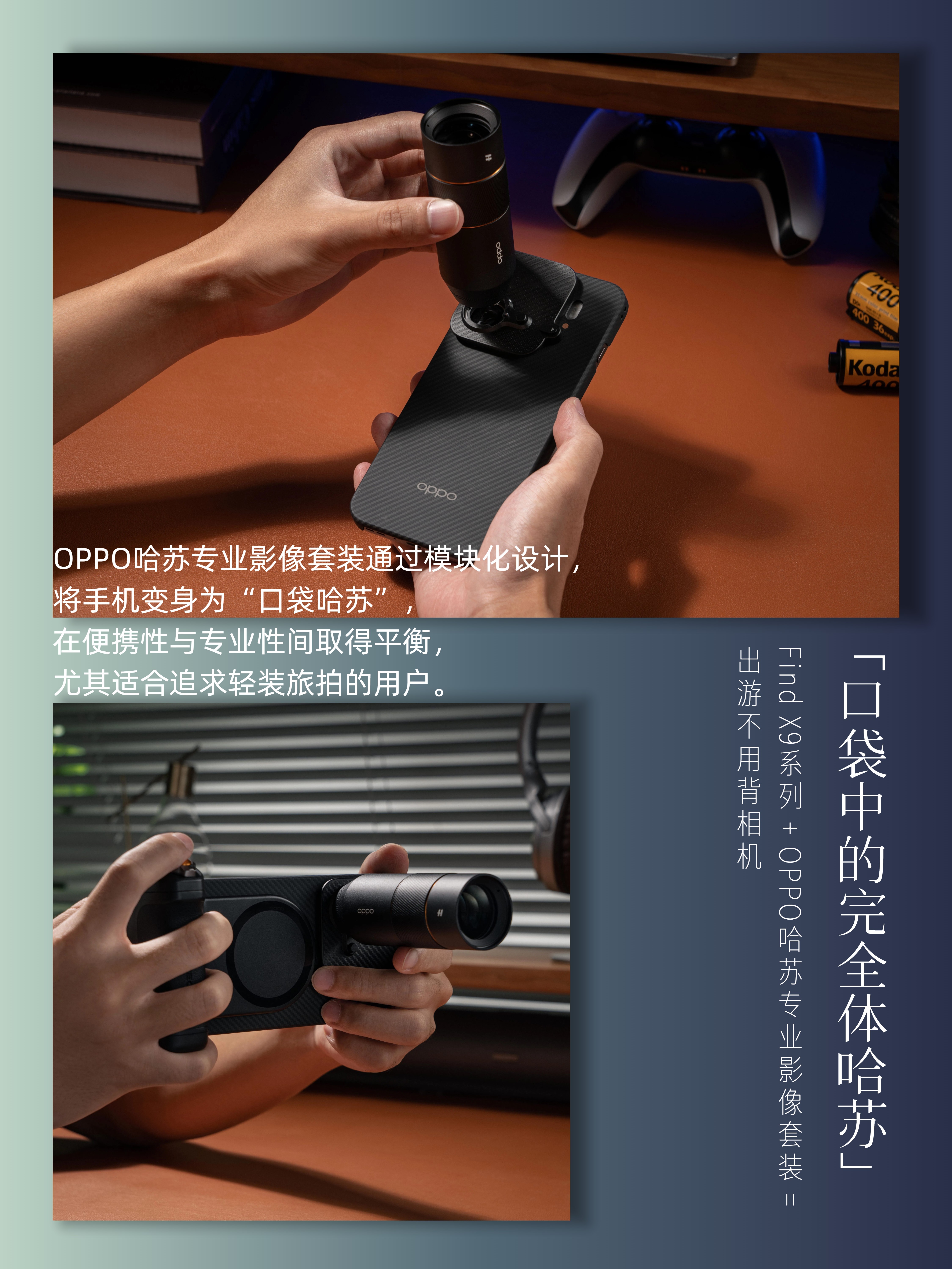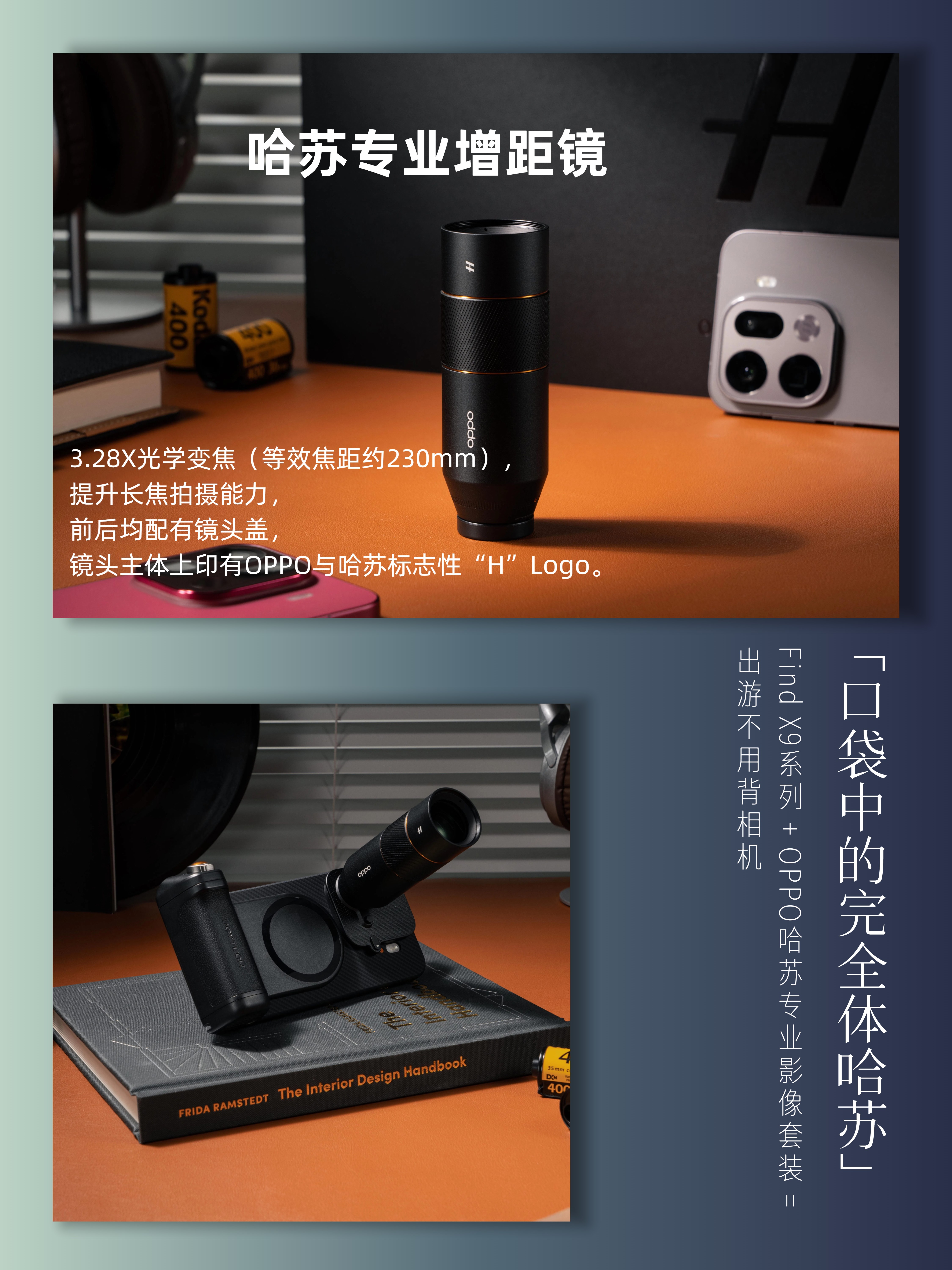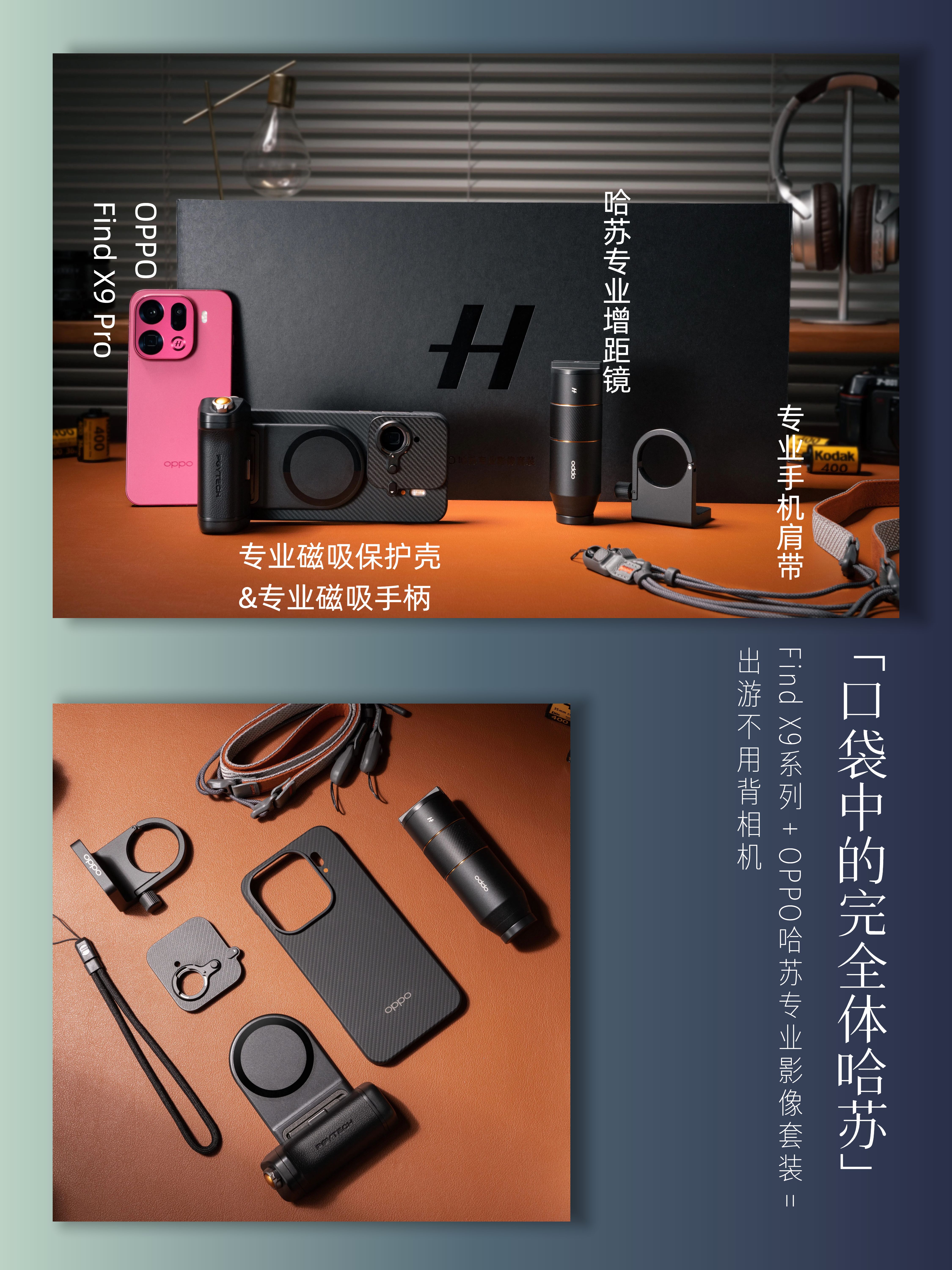抢不到演唱会前排、出行长枪短炮的痛点终于要被OPPO给解决了吗?看看刚官宣的OPPO哈苏专业影像套装,首先,所有人都无需置疑哈苏设计,其次,这套套装不仅有专业磁吸保护壳、专业磁吸手柄、专业手机肩带,更是带来了「人生第一支哈苏镜头」——哈苏专业增距镜,支持3.28X光学变焦,搭配上本就超强的OPPO Find X9 Pro的真2亿像素潜望长焦,坐在体育场的看台上都能有媲美和爱豆面对面的观演体验,这还怕不够出片?