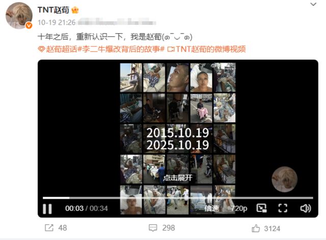 在视频中,赵荀非常感慨的表示:“十年之后,重新认识一下,我是赵荀。”
