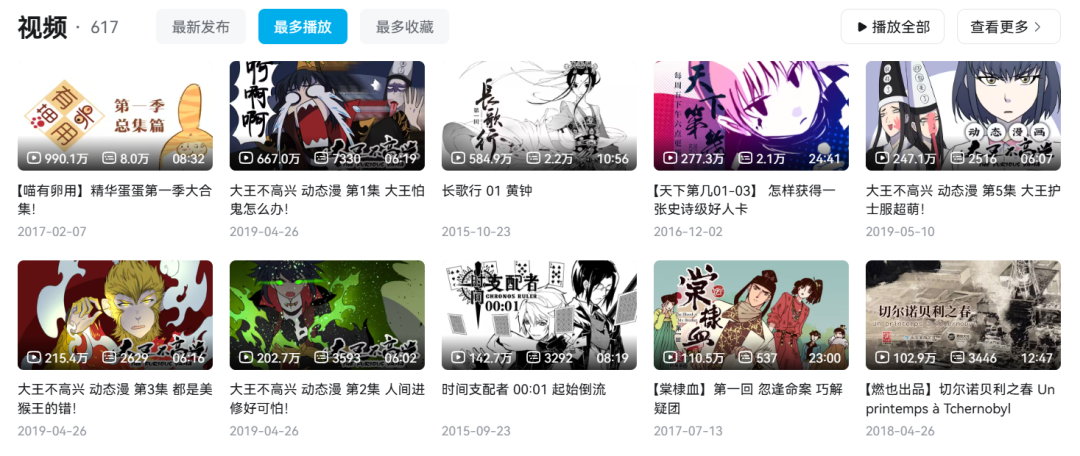 然而,在长视频平台的赛道上,动态漫画始终摆脱不了“替代品”的标签。在动画观众眼里,动态漫画的流畅度甚至不如PPT,充其量是带配音的漫画作品。但动态漫画也拥有自己的优势——制作规模要求低,成本控制便捷,产出效率相对较高。在这样的背景下,动态漫画在长视频平台的动漫频道发展过程中渐渐成为观众用来消磨时间的工具。