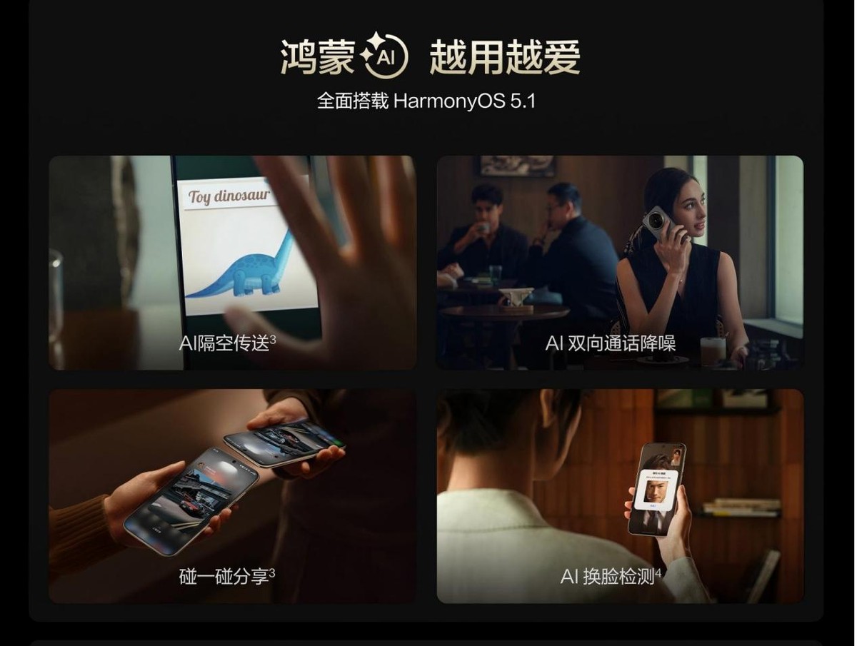 华为Mate 70 Air不仅搭载了麒麟芯片,鸿蒙5.1系统的加入,还为其注入了更智慧的交互体验。AI双向通话降噪功能,能在电话、畅连或微信语音中精准过滤环境噪音,确保通话清晰。AI换脸检测功能可以在视频通话时智能检测换脸痕迹,AI通话防诈功能则能够智能检测语音通话内容的诈骗风险,通话更安心。