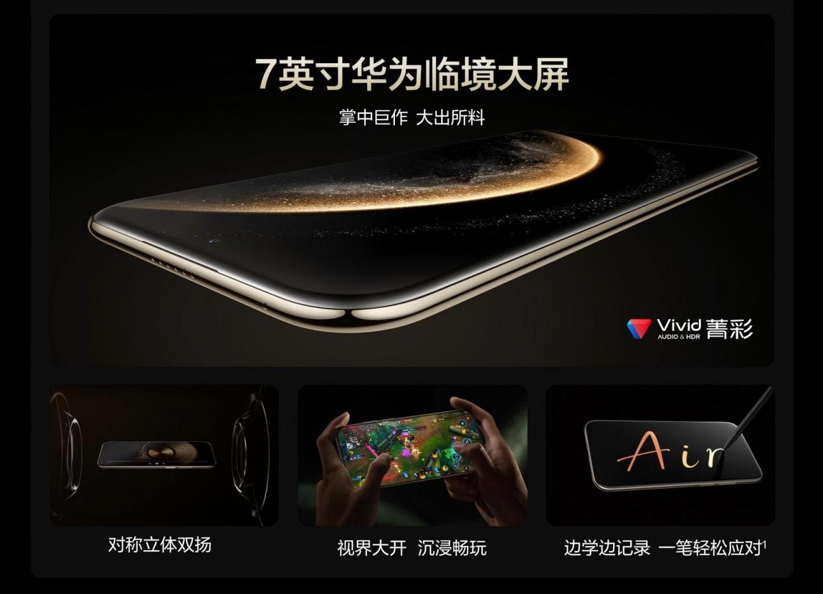 根据官方信息,华为Mate 70 Air在配备7英寸超大屏的同时,将机身厚度成功控制在6.6mm,重量仅为208g,宽度为81.5毫米,由此带来了极为出色的握持手感,久用不累。其创新全框VC配合台阶焊的散热架构,确保了轻薄机身下的高效热能管理;而6500mAh大容量电池与66W华为超级快充的组合,则奠定了强劲续航的基石。这一切,共同塑造了它“轻薄实力派”的体验——既传承了华为Mate 20X时代的视觉沉浸感,更在现代审美下,增添了前所未有的轻盈与舒适。