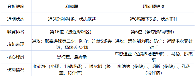 · 主流预测:阿斯顿维拉客场取胜。这是基于双方近期表现、攻防稳定性和历史交锋数据得出的最可能结果。