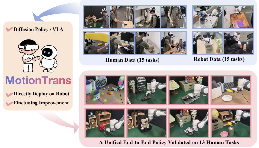 MotionTrans支持零样本实现端到端的人类向机器人技能迁移