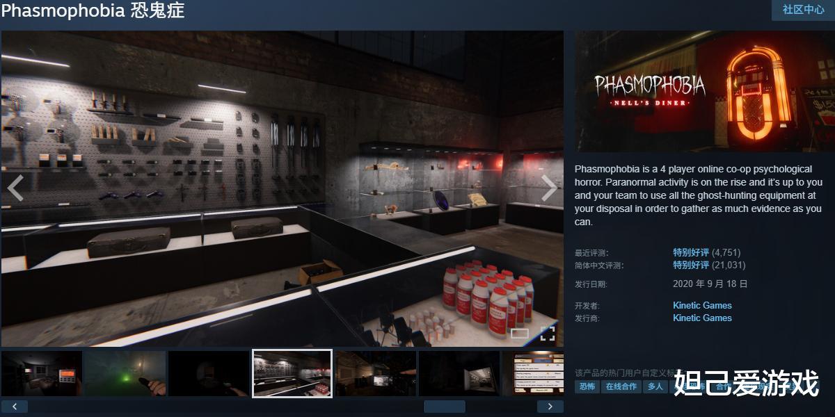 自2020年上线至今,《恐鬼症》已累计售出2000万+份,在STEAM平台获得数万玩家打出的特别好评荣誉,除玩法备受好评外,《恐鬼症》运营团队的更新也是十分频繁,全新“Nell's Diner”地图已上线。