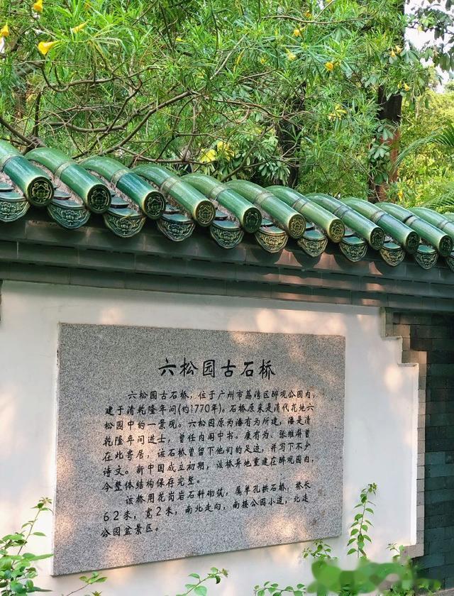 公园植被丰茂,园林优美,廊亭石山,湖水潺潺、盆景园雅致,市一级保护文物“六松桥”和市级文物“小蓬仙馆”坐落在公园内。六松桥坐落于盆景园,一座乾隆年间建造的清代石桥,桥身古朴无雕饰,曾是康有为、林则徐等历史人物的漫步之处。