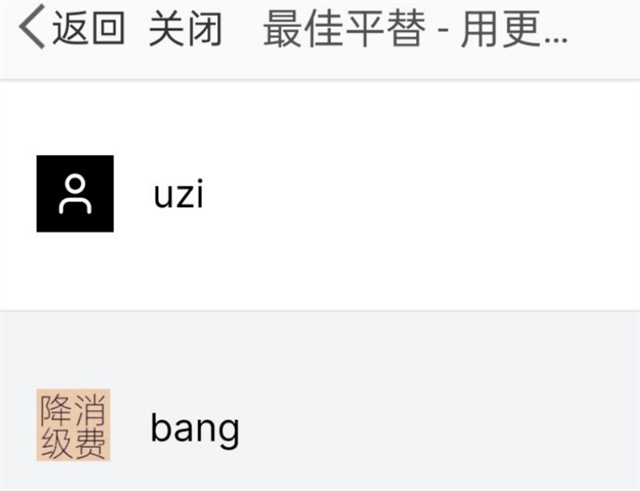 另外,ad位置还有一位明星选手乌兹,他的“平替”是谁呢?根据显示的结果,简自豪是无可替代的,而乌兹的平替变成了世界冠军bang?看来,这个ai的设计者或许是乌兹的粉丝。一边说简自豪“无可替代”,一边又说bang可以做乌兹的平替,我感觉只有粉丝才会做这种设计吧。