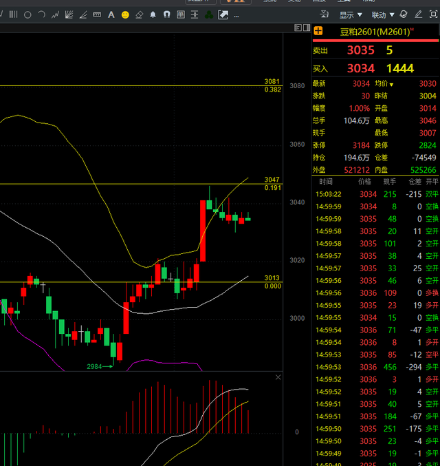 豆粕2601合约:基本面:终端饲料养殖企业对豆粕的采购态度较为谨慎。当前生猪市场价格低迷,养殖利润微薄,部分养殖户减少了补栏量,导致对豆粕的需求增长乏力;同时水产养殖也逐渐进入淡季,对豆粕的需求同样有所下滑。技术面:豆粕从3190点跌落后近期初见支撑有效,短线在触碰3050遇阻后调整,短线上先看回调下踩,不过大趋势多头信号刚刚确立,回踩不破位情况低多产于看反弹下方支撑关注3010操作建议:豆粕回踩低多为主,下方支撑3010上方短线压力看3190
