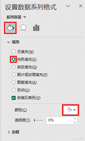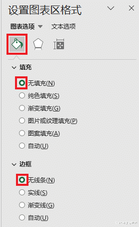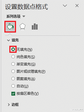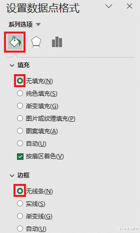 23. 将饼图中两块大的设置为“无填充”和“无线条”。