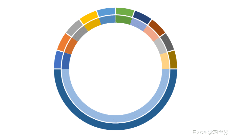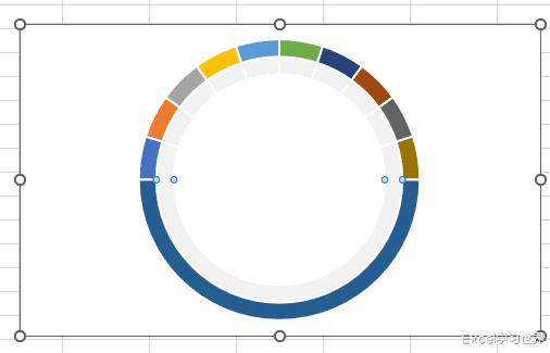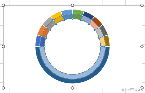 21.将饼图缩小,拖动到圆环内部,尽量圆心对圆心。