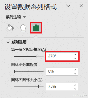 4. 双击图形区域 --> 在右侧的设置区域中将“第一扇区起始角度”设置为 270 度。