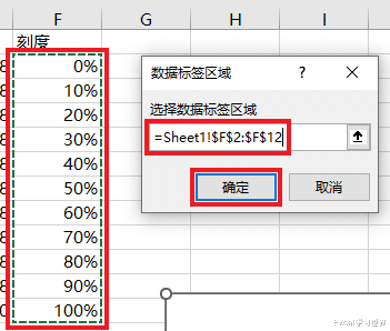 12. 在弹出的对话框中选择刻度区域的值 --> 点击“确定”