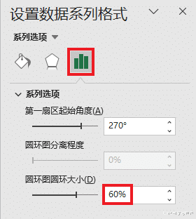 14. 选中圆环区域 --> 将“圆环图圆环大小”设置为 60%。