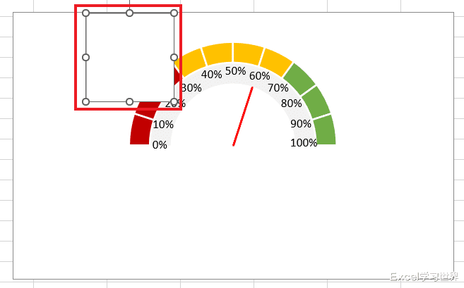 25. 将“指针大小”的值更改为 0,饼图就会变成一条红色的线。