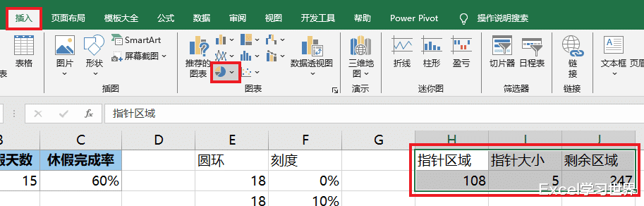 19. 选中 H1:J2 区域 --> 插入饼图