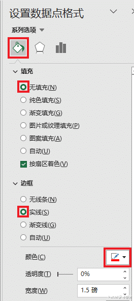 24. 选中指针区域图形 --> 设置为“无填充”--> 将边框设置为红色实线