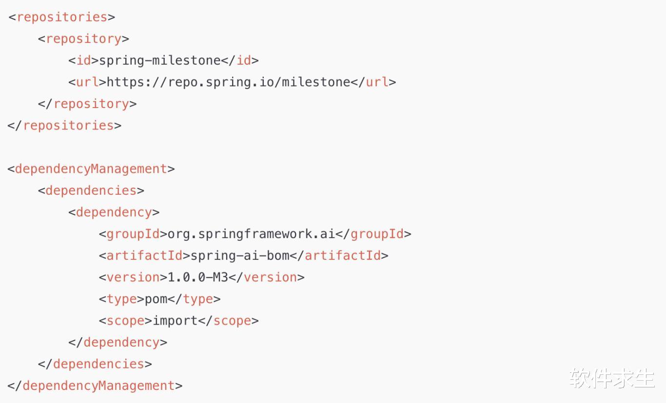 在你的 pom.xml 里,先加入 SpringAI 官方的仓库和 BOM 管理: