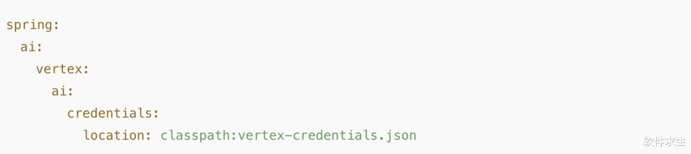 只要你在 application.yml 或 application.properties 里配置好 Vertex AI 的相关属性,Spring 就会自动帮你实例化好模型对象。我们只要做一件事:配置属性。