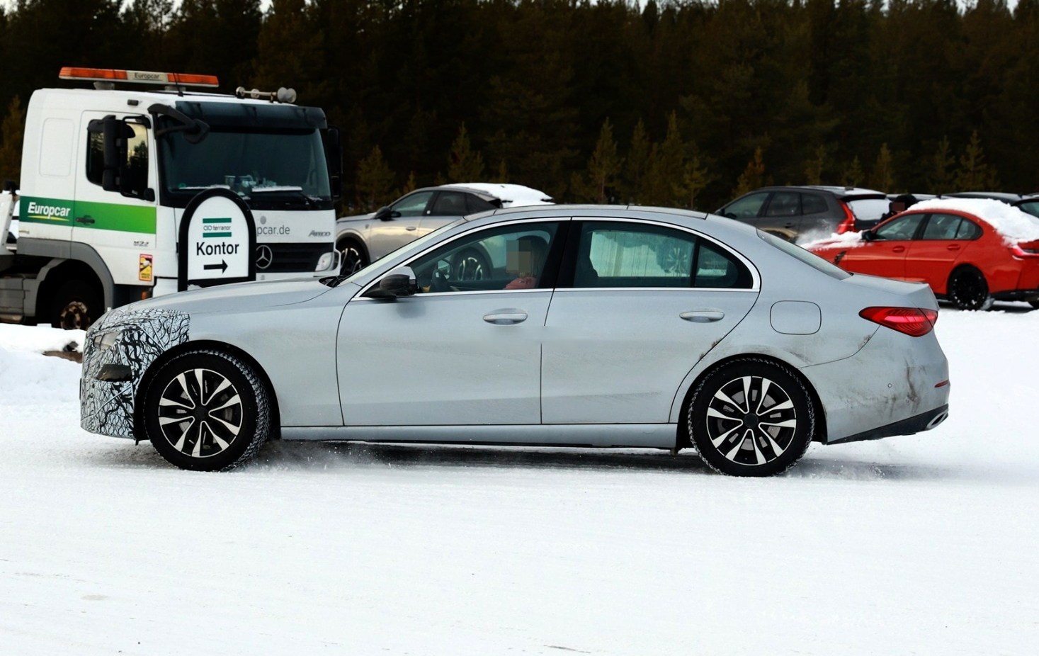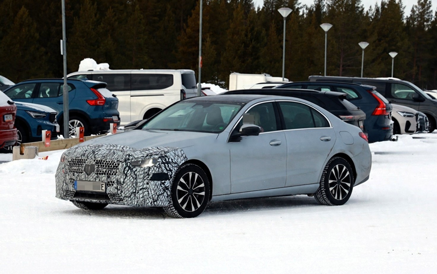 这是一条海外车讯:奔驰将在2026年对旗下C级进行小改款。近日,有汽车谍照摄影师捕捉到原型测试车身影,可以看到,测试车伪装仅仅保留车头部分,从大灯细节部分来看,改款奔驰C级将会使用全新灯组造型。