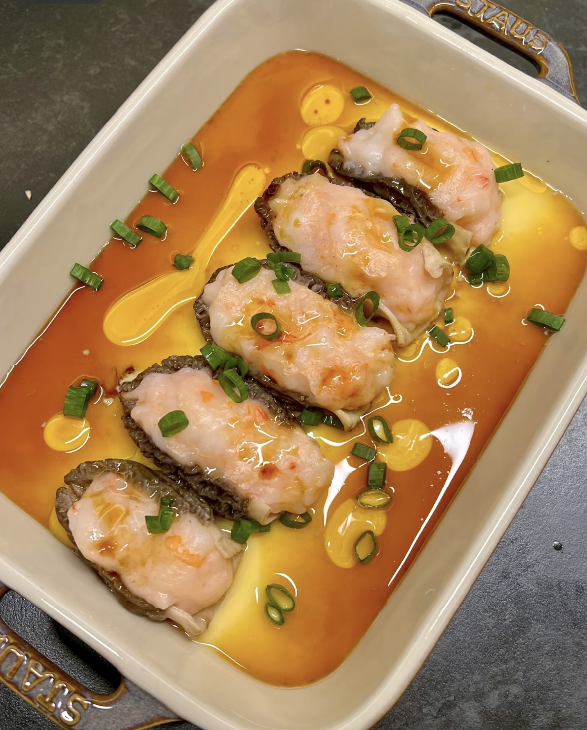 等待的时间别刷手机,处理羊肚菌。剪开菌柄,用流水冲掉褶皱里的泥沙,动作轻点,别把“小伞”弄破。水烧开,丢进去焯2分钟,去土腥,也让菌柄变软,后面好塞虾滑。捞起来过冷水,颜色更漂亮。虾滑装进裱花袋,没有就用保鲜袋剪小口,挤进菌肚子,鼓鼓囊囊像藏了私房钱。虾滑外溢一点没关系,蒸完会缩,刚好封口,颜值在线。