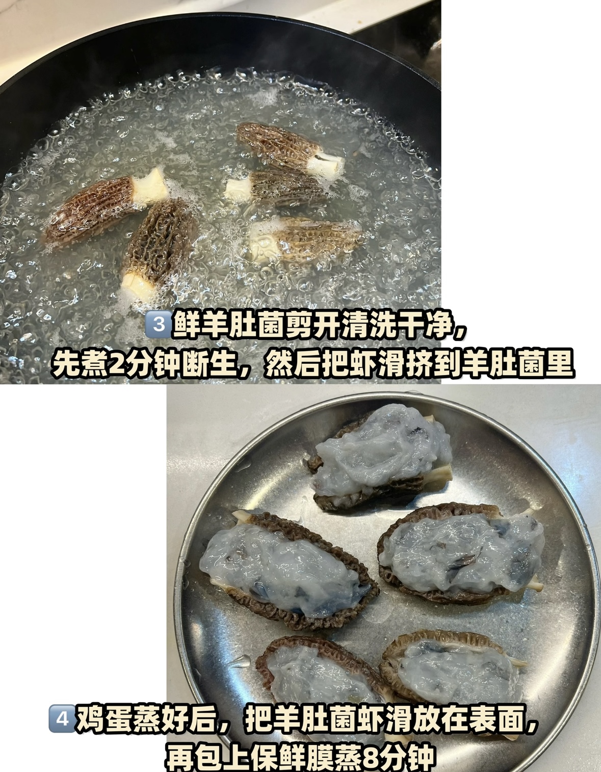 先说主角。鸡蛋选个头匀称的洋鸡蛋就行,土鸡蛋更香,预算够直接上;虾滑我用的是菜市场现剥现打的,看得见整块虾肉,比冷冻淀粉丸子高贵多了;鲜羊肚菌现在超市冷柜常年有卖,一小盒60克,长得像迷你的小蜂窝,价格小贵,但咬开那股森林松露香,立刻原谅钱包出血。至于调料,厨房里最普通的生抽、芝麻油就行,别整蚝油、鸡精,抢了鲜味反而画蛇添足。