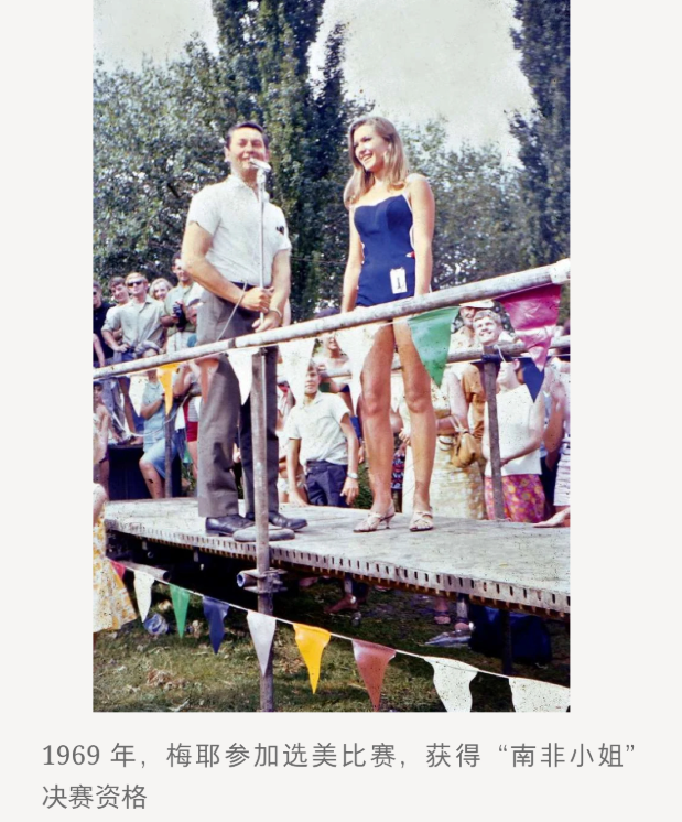 年轻时的梅耶可是美女,她参加选美还获得“南非小姐”决赛资格,当时的她还有点儿青涩,不过笑容灿烂,美丽又清纯!