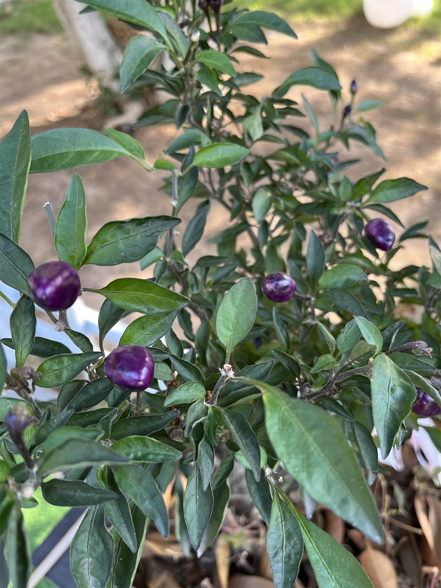 可爱的紫朝天椒,据说原产秘鲁、南美洲地区。是可以食用的小辣椒,初生时是紫色,慢慢会变成红色,和一般朝天椒一样辣。