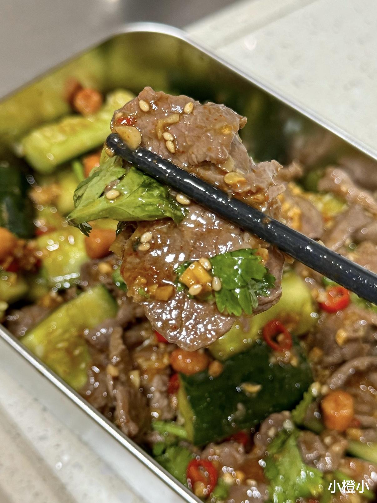 清爽、香辣、低卡、高蛋白,一口下去,黄瓜脆得像在牙齿上跳舞,牛肉嫩得不像话,香菜和小米辣“咻”地一下把味蕾全部叫醒,连米饭都想请假缺席!