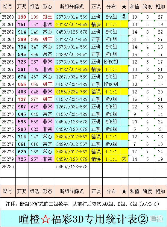 25280期:暄橙福彩3D综合条件