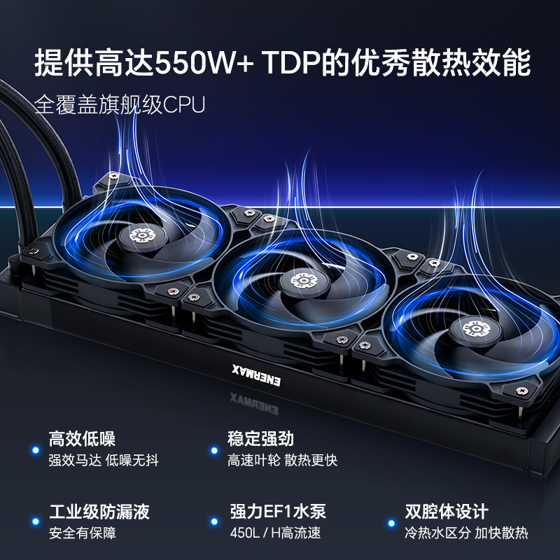 作为旗舰新品,安耐美LIQTECH XTR幻彩锐龙360一体式水冷,在官方宣传中明确写道“支持AMD线程撕裂者”,最高支持TDP 550W的散热能力,兼容LGA4677和sTR5 CPU安装脚位。