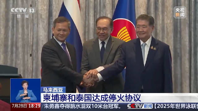 双方同意自7月28日当地时间24时(北京时间29日凌晨1时),泰国和柬埔寨停火协议正式生效),以结束持续5天的边境冲突。