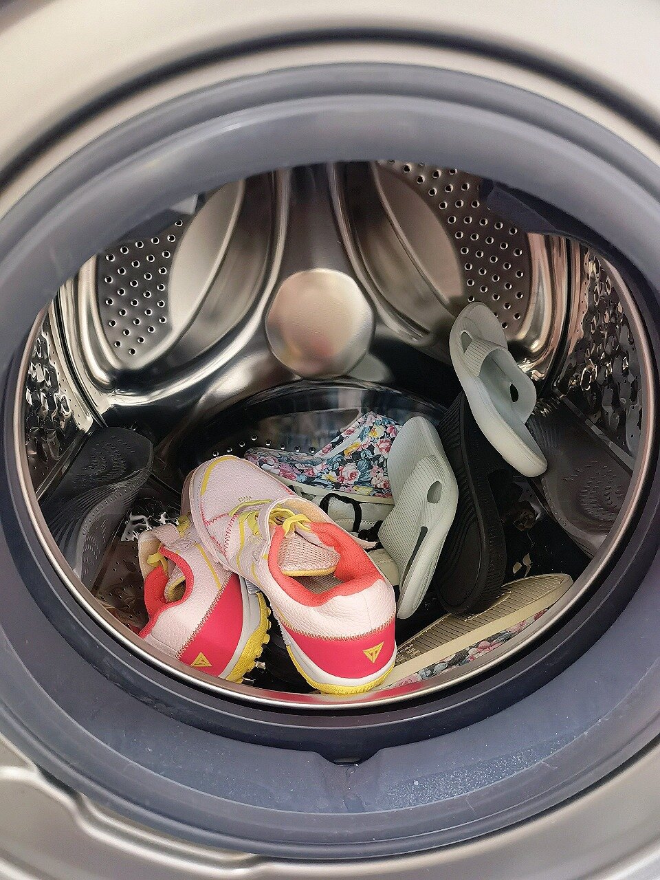 很多人习惯把脏鞋丢进洗衣机,却不知运动鞋的鞋底坚硬,高速旋转时会反复撞击洗衣机内筒,造成内壁磨损、掉漆,甚至导致机器失衡晃动。而且鞋子的缝隙里藏着大量泥沙,会沉积在洗衣机底部,污染水质,反而洗不干净。