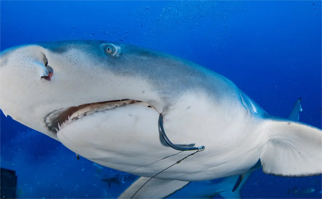 有报道称,有些鲨鱼被发现时,口中深深嵌入了多达七个鱼钩。