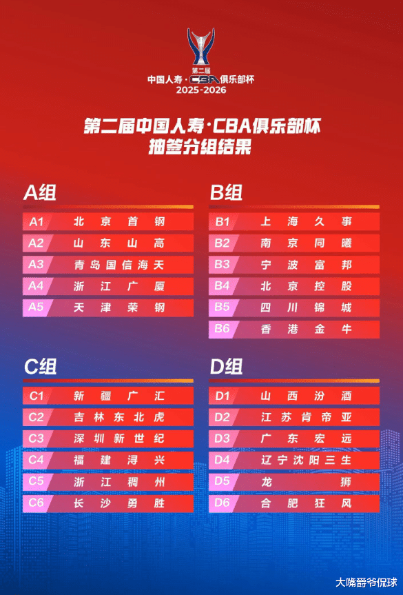 新赛季CBA俱乐部杯已经完成抽签,备受关注的必然是D组,其中广东和辽宁这对老冤家同处一组,还有上赛季的四强队伍山西,但是,真正能对CBA未来的走势产生影响的,还是B组。