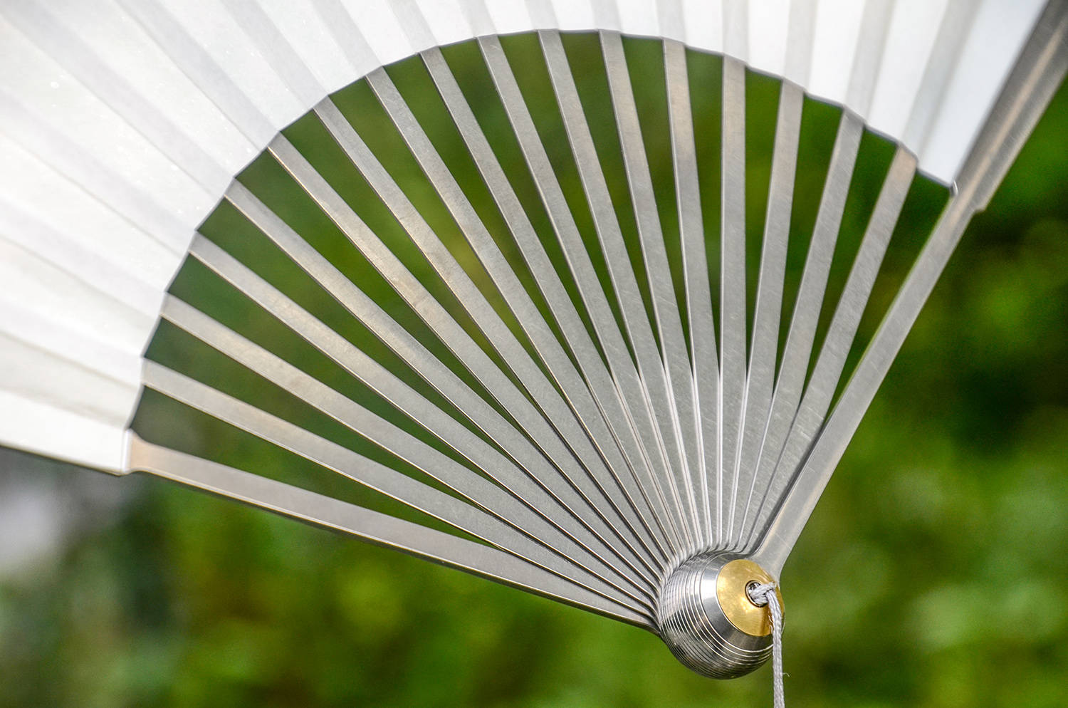 展开后和尚头的扇尾完全控制在掌心,配合扇柄边缘的倒角,手持扇柄来回摇动,凉风四起,阳光暑热顿消,清凉随身陪伴。