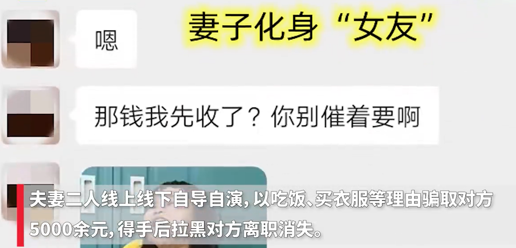 而类似的故事,正以更隐蔽的方式在全国各地上演:上海松江的丁某夫妇把妻子包装成"同事女友"骗走5000元,广西陈某被堂婶聂某假扮"杨燕""林警官"等七重身份骗走56万......
