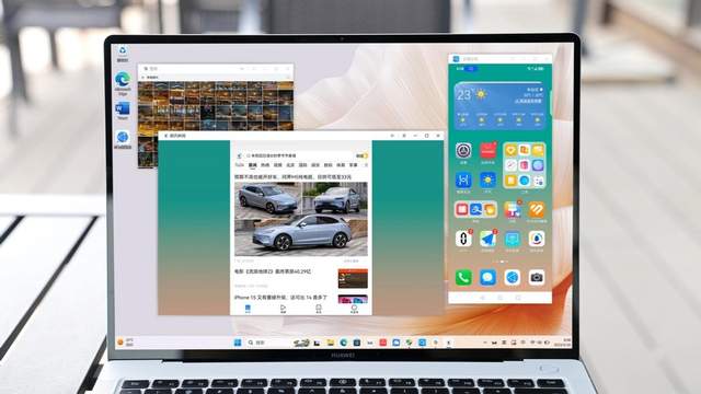 以我新入手的华为MateBook X Pro为例,通过超级终端,可以把华为手机图标与PC图标一拉即合,触发多屏协同。PC与手机协同后,手机界面会直接在PC上弹出,PC最多可同时打开三个手机窗口,并且这些App窗口还支持横屏显示。比如PC打开手机备忘录、微信、浏览器,三个应用窗口同步操作,记录领导给到的规划方案和网上查到的资料,去和客户开会时在手机端直接查看相当方便。